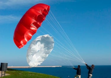 Prise en charge de tout type de parachute de secours : carré, hémisphérique, Rogallo.