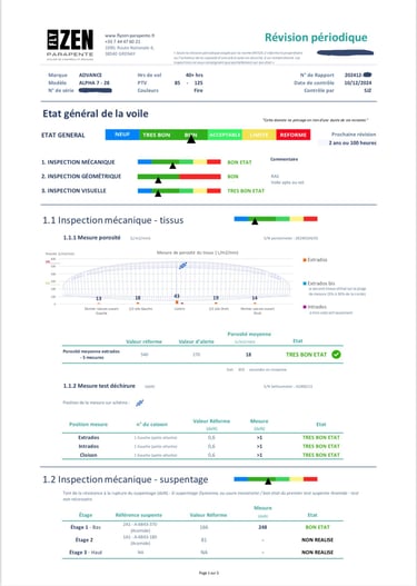 Tous les résultats des tests et mesures sont reportés dans un rapport - respectant une charte précise - afin d'être comparable et harmonisé avec la plupart des ateliers de révision en France, et facilement interprétable.