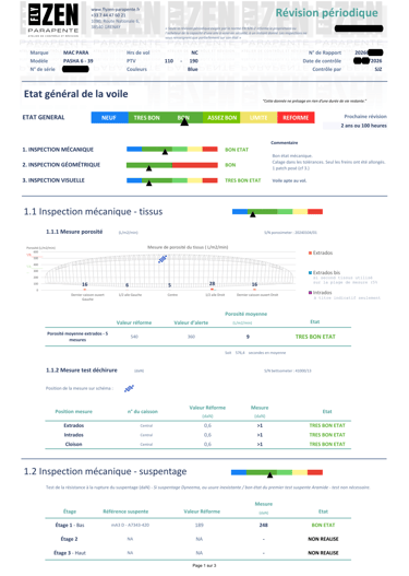 Tous les résultats des tests et mesures sont reportés dans un rapport - respectant une charte précise - afin d'être comparable et harmonisé avec la plupart des ateliers de révision en France, et facilement interprétable.